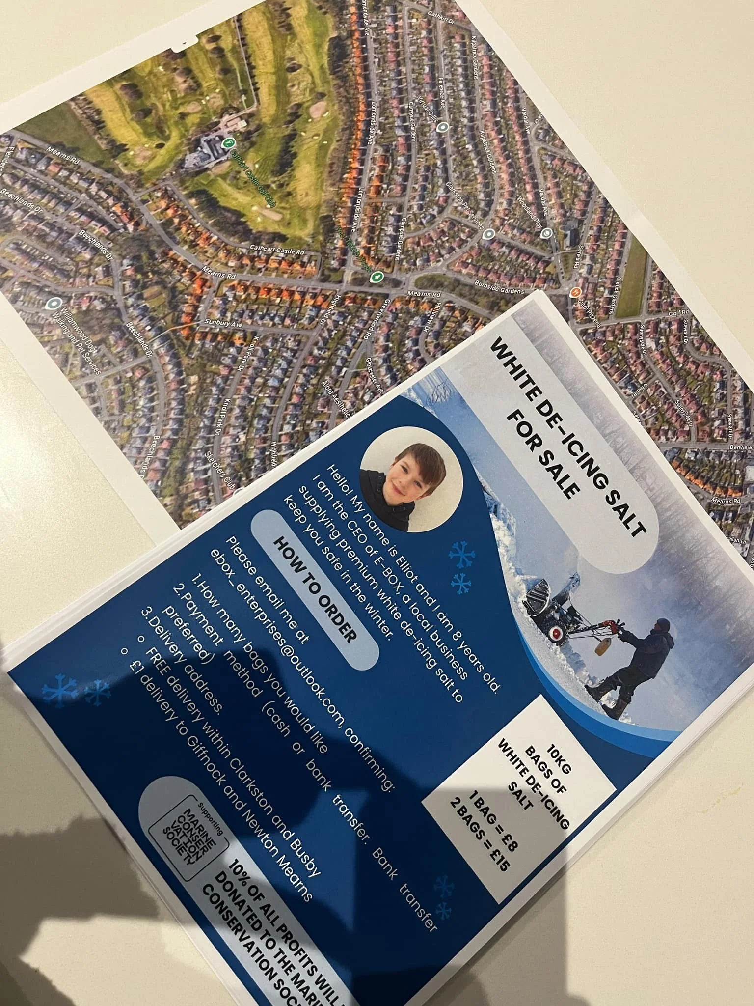 Hi, I’m Elliot, the founder of E-Box! I started this business in 2024 when I was 8 years old (with the help of my mum and dad) to help people in my local community stay safe in the icy weather.